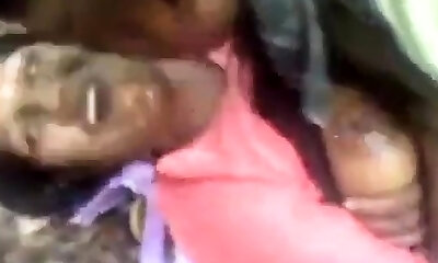 une indienne vêtue d'une tenue traditionnelle se fait baiser dans la bouche et la chatte en plein air