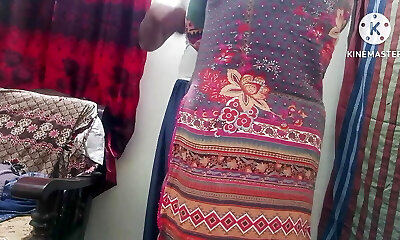 Desi bhabhi Saree blouse and brassiere wearing front of devar