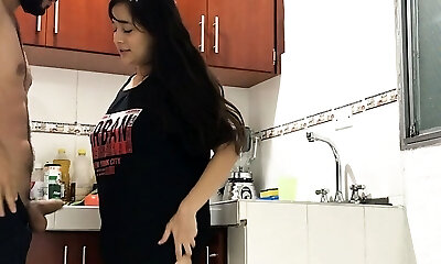 I masturbate my little stepsister while she cooks and I fuck her hard hiding from our step-dads.