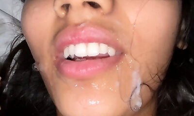 A couple of Latin stepbrothers have fuck-fest for the very first time without their stepfathers knowing. He cums in her mouth.