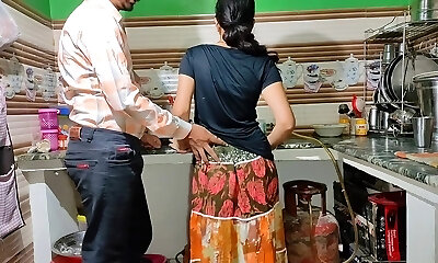 indiano cameriera scopata da owner, desi cameriera scopata in il cucina, chiaro hindi audio sesso