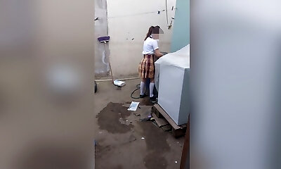 School chicks nude display pissing in bathroom and making video for her boyfriend and pie in her g-string