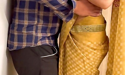 Curly Indian Butterball In Sari Displays a Sloppy Suck and Gets Cream In Her Rear End-exposed Pussy